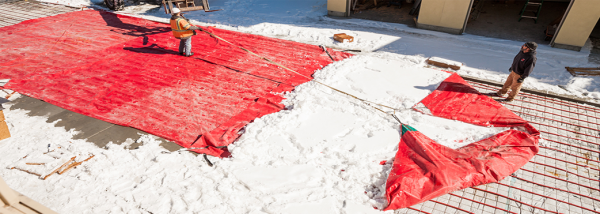 We use Snow Shields in other ways too. Concrete blankets tend to blow in the wind so we lay Snow Shields on top of the tarps to keep them in place.